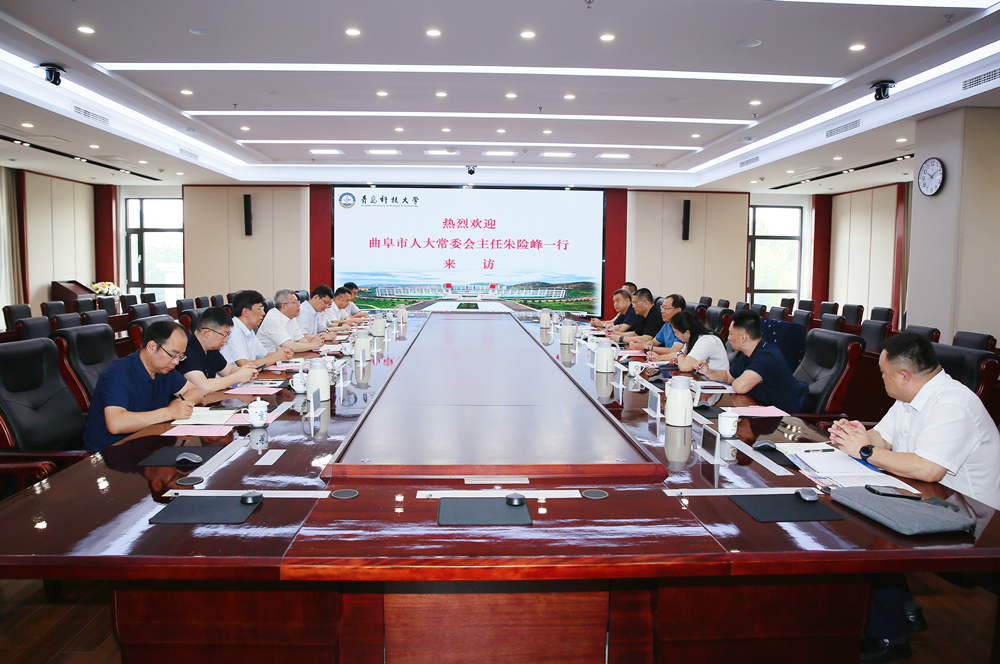 朱险峰对学校取得的成绩表示祝贺,并介绍了曲阜市经济社会发展情况和人大履职成效。他表示,当前曲阜市正深入贯彻落实新发展理念,在产业升级、科技创新等多个方面面临新的机遇与挑战,迫切需要高校的智力支持和科技支撑。希望双方立足各自优势,建立常态化合作机制,推动科技创新与产业创新深度融合,联合开展关键技术攻关,完善科技成果转化机制,促进学校创新成果在曲阜落地生根,共谱校地合作发展新篇章。