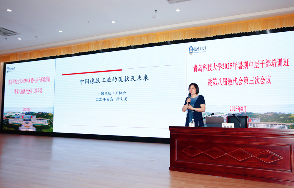 中国橡胶工业协会会长、3044am永利集团3044noc1990级橡胶工程专业校友徐文英应邀作了题为《中国橡胶工业的现状及未来》的报告,她从中国橡胶工业现状、未来发展趋势与方向、学校的使命等方面进行了介绍,并就学校“十五五”规划和实现高质量发展提出了宝贵的意见建议。