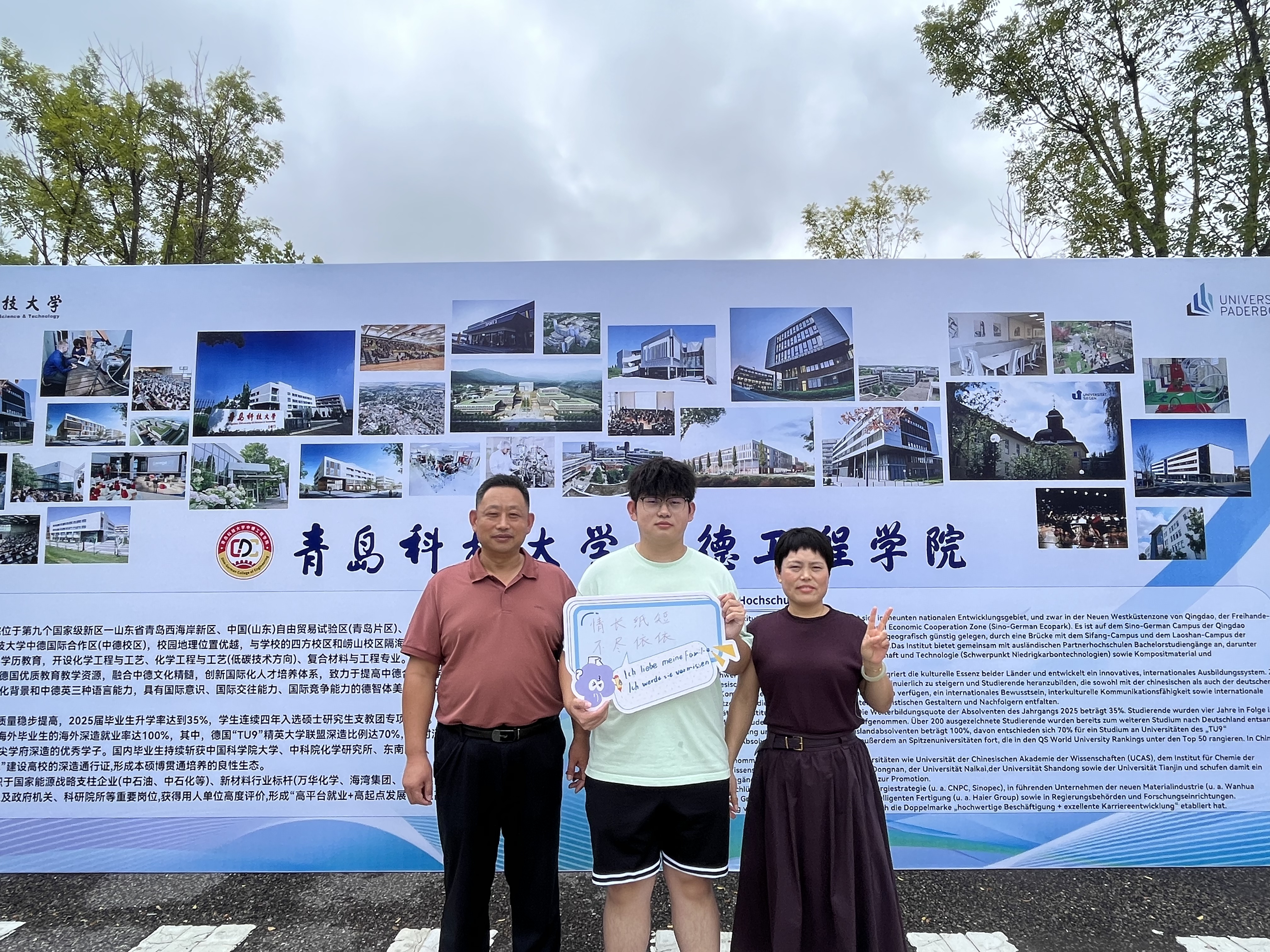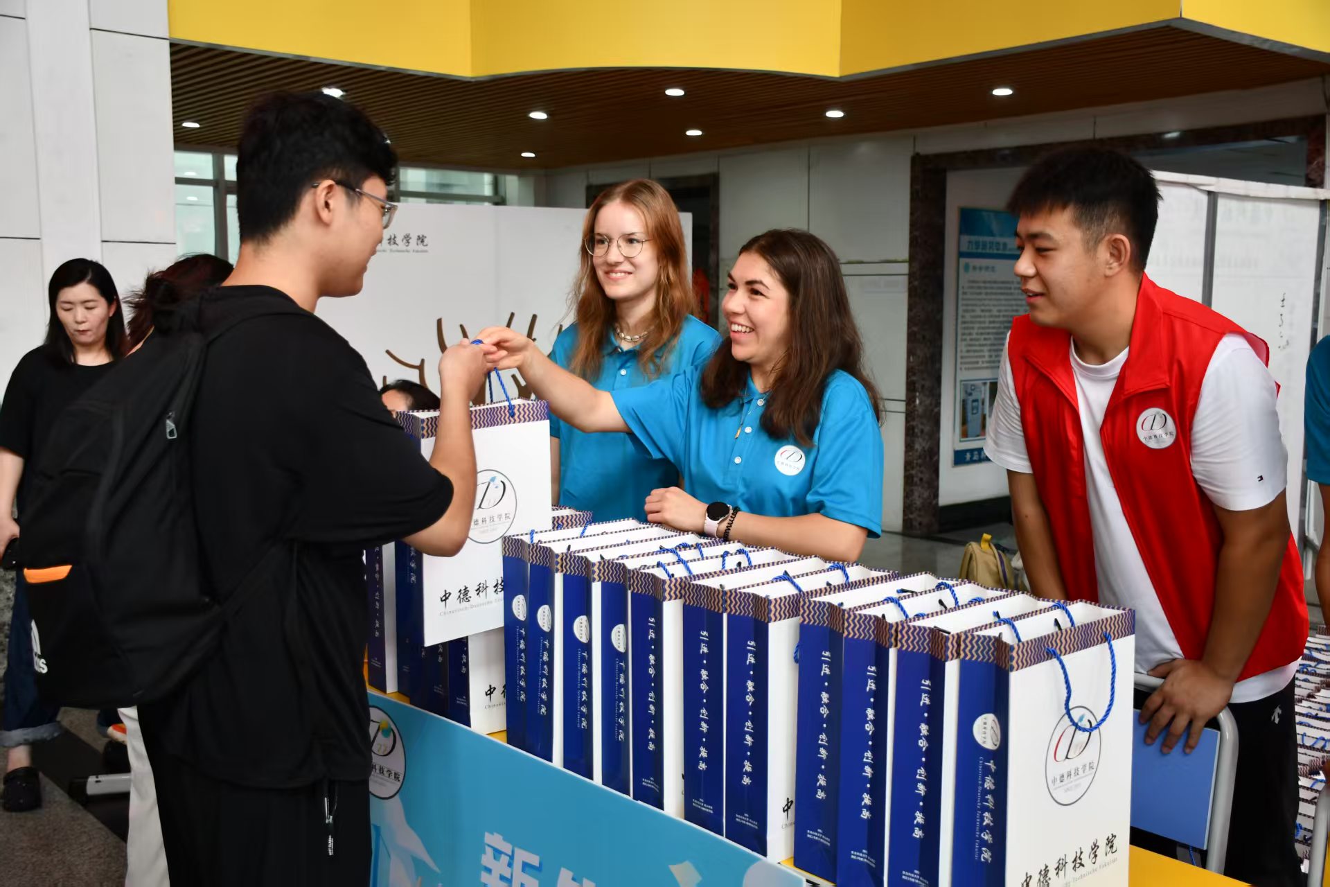 中德科技学院将迎新工作塑造成思政教育与国际化教育理念深度融合的育人平台。精心安排德国外教发放新生大礼包,营造出浓厚的国际化氛围,传递学院关怀。精心打造“笃学中德 荫育千才”特色主题活动,通过“拍立得”定格新生的最美瞬间,将这些珍贵照片张贴在树木之上。远远望去,每一位新生宛如新叶,共同勾勒出一幅立德树人的成长画卷。组织新生家长会,围绕亲子关系维护、学院课程体系设置、专业发展前景及出国方向规划等家长关切的话题展开详细讲解,帮助家长全方位了解学生在校学习生活的支持与路径,为新生开启大学生涯筑牢家校合作的坚实基础。
