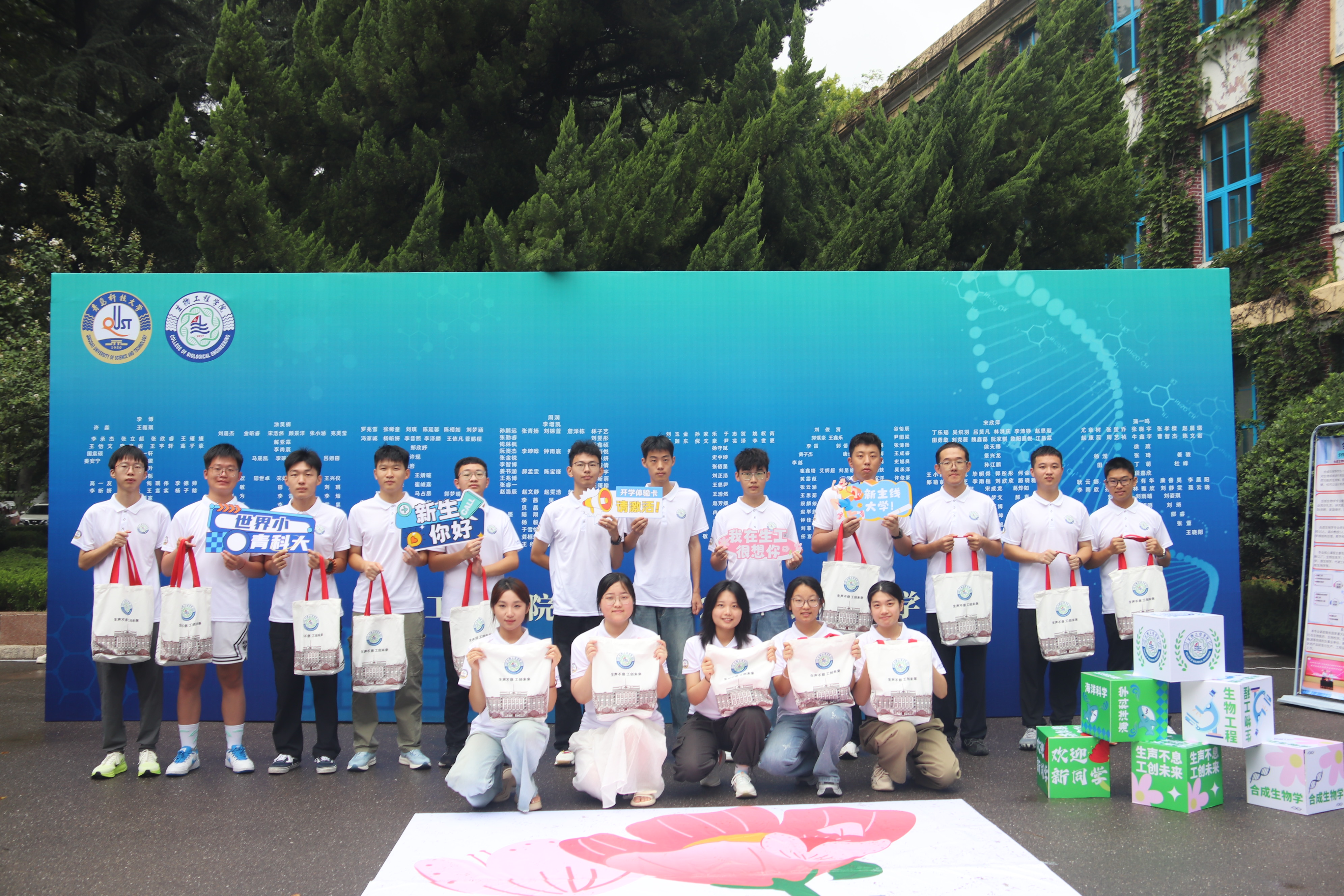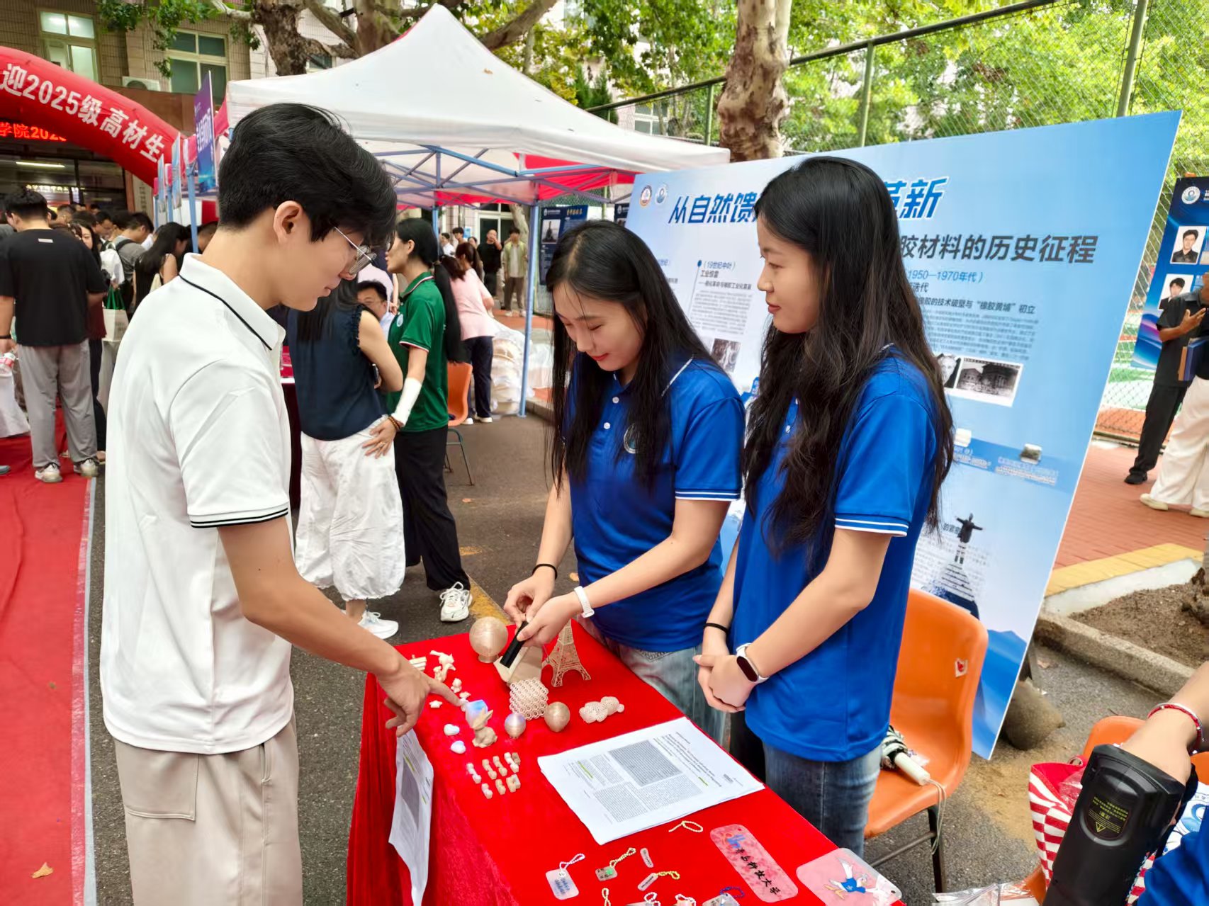 高分子科学与工程学院以“橡聚青春逐梦场,携手奋进启新程”为主题,打造“橡遇·淬炼·成就”三阶引领体系。开设“家长开放日”,由院长、系主任亲授学院发展历程与专业特色,并带队参观实验室,同步设置高分子材料实物体验区,通过展示实习实践成果、科创竞赛佳绩,结合学长学姐就业分享,为新生明晰发展方向;辅以摸高比赛提振精神风貌,依托抗战胜利80周年知识问答筑牢思想根基,全方位助力“五星高材生”培养目标落地。 定制专属POLO衫、文具套盒、《橡尚青年成长攻略》的迎新大礼包,并拍摄迎新MV《若你们还没来》。